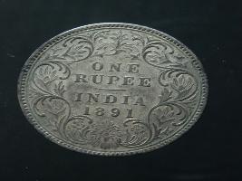 | Description / विवरण | The obverse shows the crowned bust of Victoria facing left, with the divided legend along the edge. Milled rim, with dotted circle. Obverse legend Victoria Empress. Reverse, in centre, surrounded by a floral vine One Rupee India 1890. Double circle with dots along the edge. |