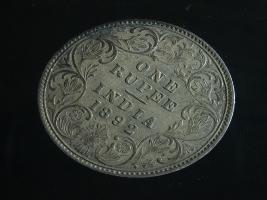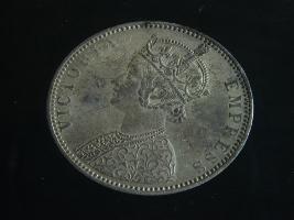 | Description / विवरण | The obverse shows the uncrowned head of the young Victoria facing left, hair done in a pony-tail, with the unbroken legend along the edge. Milled rim, with dotted circle. Obverse legend Victoria Queen. Reverse, in centre, surrounded by floral branches One Rupee yak rupiah in Persian characters . Along the edge, East India Company with the date 1840 at the bottom. Double circle with dots along the edge. |