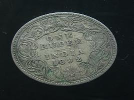 | Description / विवरण | The obverse shows the crowned bust of Victoria facing left, with the divided legend along the edge. Milled rim, with dotted circle. Obverse legend Victoria Empress. Reverse, in centre, surrounded by a floral vine One Rupee India 1892. Double circle with dots along the edge. |