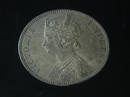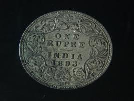| Description / विवरण | The obverse shows the crowned bust of Victoria facing left, with the divided legend along the edge. Milled rim, with dotted circle. Obverse legend Victoria Empress. Reverse, in centre, surrounded by a floral vine One Rupee India 1893. Double circle with dots along the edge. |