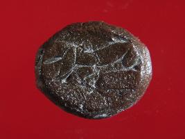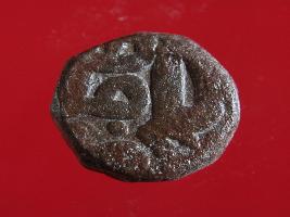 | Description / विवरण | Copper dam fulus of Akbar 962-1014 AH; 1556-1605 AD , from an unknown unidentifiable mint. Obverse Z arb Reverse 990 sanhfi nuhsad only svad on flan |