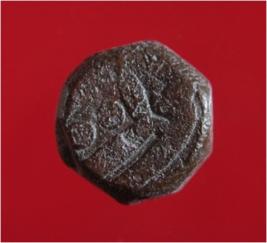 | Description / विवरण | Copper dam fulus of Akbar 962-1014 AH; 1556-1605 AD , from an unknown unidentifiable mint. Obverse Fulus Reverse Sanhfi 1 001 |