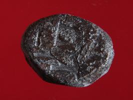 | Description / विवरण | Copper dam fulus of Akbar 962-1014 AH; 1556-1605 AD , from an unknown unidentifiable mint. Obverse Fragments of Fulus Reverse Fragments of Hazaar 1 007 sanhfi |
