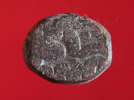 | Description / विवरण | Copper dam fulus of Akbar 962-1014 AH; 1556-1605 AD , from an unknown unidentifiable mint. Obverse Fragments of fulus rest illegible Reverse Fragments of Hazaar 1007 |