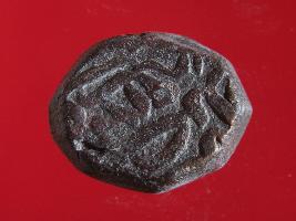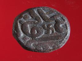 | Description / विवरण | Copper dam fulus of Akbar 962-1014 AH; 1556-1605 AD , from an unknown unidentifiable mint. Obverse Fragments of Fulus Salaa - with swastika Reverse Sanh fi 980 Nuhsad haftad last line mostly off flan |