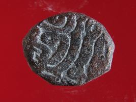 | Description / विवरण | Copper dam fulus of Akbar 962-1014 AH; 1556-1605 AD , from an unknown unidentifiable mint. Obverse Fragments of Zarb Sikkah Fulus Reverse Fragments of Sanh fi 999 Nuhsad quaterfoil |