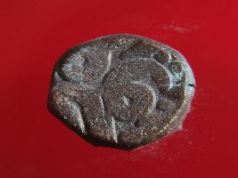 | Description / विवरण | Copper dam fulus of Akbar 962-1014 AH; 1556-1605 AD , from an unknown unidentifiable mint. Obverse Fragments of Zarb Fulus Quaterfoil golden touch of pyretes and some green copper salts Reverse Fragments of Sanh fi 10 03 Hazaar |