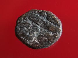 | Description / विवरण | Copper dam fulus of Akbar 962-1014 AH; 1556-1605 AD , from an unknown unidentifiable mint. Obverse Fragments of Fulus & Quaterfoil Reverse Fragments of 991 Nuhsad |