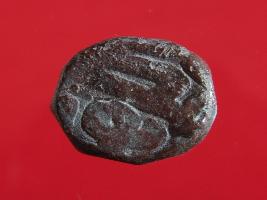 | Description / विवरण | Copper dam fulus of Akbar 962-1014 AH; 1556-1605 AD , from an unknown unidentifiable mint. Obverse Fragments of Fulus Reverse - --4 Nuhsad |