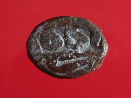 | Description / विवरण | Copper dam fulus of Akbar 962-1014 AH; 1556-1605 AD , from an unknown unidentifiable mint. Obverse Fragments of Fulus Reverse - Fragments of 999 Nuhsad |