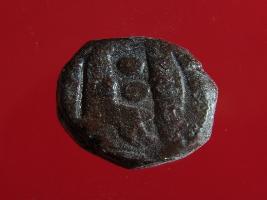 | Description / विवरण | Copper dam fulus of Akbar 962-1014 AH; 1556-1605 AD , from an unknown unidentifiable mint. Obverse Fragments of ;Fulus Reverse Fragments of Sanh fi 1002 Hazaar |