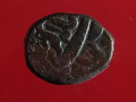 | Description / विवरण | Copper dam fulus of Akbar 962-1014 AH; 1556-1605 AD , from an unknown unidentifiable mint. Obverse Fragments of Zarb Bar Tankah Akbar Shahi Reverse Ilahi 4- Month unreadable |