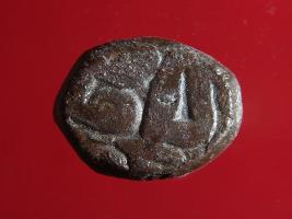 | Description / विवरण | Copper dam fulus of Akbar 962-1014 AH; 1556-1605 AD , from an unknown unidentifiable mint. Obverse Fragments of Fulus Quarterfoil Reverse Fragments of Nuhsad -99 999 fi sanh |