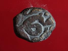 | Description / विवरण | Copper dam fulus of Akbar 962-1014 AH; 1556-1605 AD , from an unknown unidentifiable mint. Obverse Fragments of Zarb Fulus Reverse - Fragments of Sanhfi --4 |