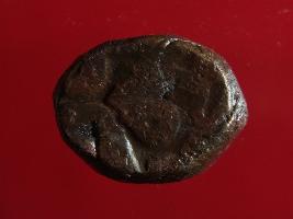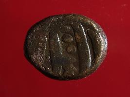 | Description / विवरण | Copper dam fulus of Akbar 962-1014 AH; 1556-1605 AD , from an unknown unidentifiable mint. Obverse Fragments of Zarb Fulus, hint of a quaterfoil Reverse - Fragments of 1003 Sanhfi Hazaar |