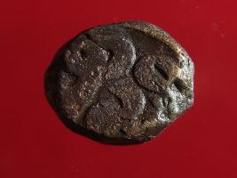 | Description / विवरण | Copper dam fulus of Akbar 962-1014 AH; 1556-1605 AD , from an unknown unidentifiable mint. Obverse Fragments of Zarb Fulus and quaterfoil Reverse - Fragments of Sanh fi 2 or 4 haft |
