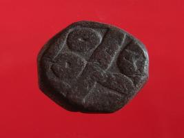| Description / विवरण | Copper dam fulus of Akbar 962-1014 AH; 1556-1605 AD , from an unknown unidentifiable mint. Obverse Fragments of Fulus Quaterfoil Reverse Fragments of 1 001 hazaar |
