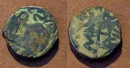 | Description / विवरण | Descrpn./Obv Recumbent bull facing left, wearing jhula (saddle cloth). Above, legend in Sarada script Sri Samantadeva (in cursive letters, mostly truncated and seen partially or off the flan). Descrpn./Rev Rider with lance on caparisoned horse facing right. |