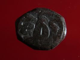 | Description / विवरण | Copper dam fulus of Akbar 962-1014 AH; 1556-1605 AD , from an unknown unidentifiable mint. Obverse Fragments of Fulus Quaterfoil Reverse Fragments of Sanhfi 984 Nuhsad Hashtad |