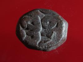 | Description / विवरण | Copper dam fulus of Akbar 962-1014 AH; 1556-1605 AD , from an unknown unidentifiable mint. Obverse Fragments of Zarb Fulus Quaterfoil Reverse Fragments of Sanhfi 989 Nuhsad Month unreadable |