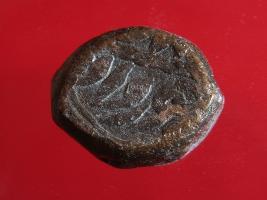 | Description / विवरण | Copper dam fulus of Akbar 962-1014 AH; 1556-1605 AD , from an unknown unidentifiable mint. Obverse Fragments of not readable, the Akbar Shahi Reverse - Ilahi - Month Khurdad |