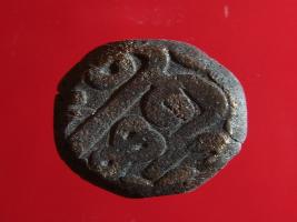 | Description / विवरण | Copper dam fulus of Akbar 962-1014 AH; 1556-1605 AD , from an unknown unidentifiable mint. Obverse, fragments of fulus with a hint of zarb below and a trefoil above the vao of fulus. Reverse, fragments of nuhsad haftad 97- |