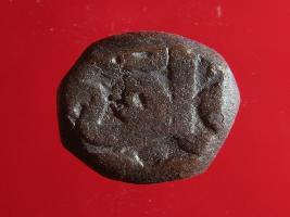 | Description / विवरण | Copper dam fulus of Akbar 962-1014 AH; 1556-1605 AD , from an unknown unidentifiable mint. Obverse, fragments of fulus and a quatrefoil. Reverse, fragments of -7 hazaar 1007 |