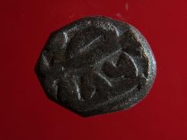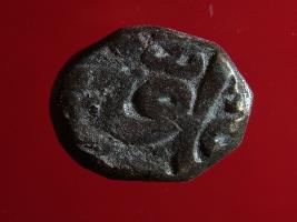 | Description / विवरण | Copper dam fulus of Akbar 962-1014 AH; 1556-1605 AD , from an unknown unidentifiable mint. Obverse, fragments of fulus quatrefoil; hint of zarb below. Reverse, fragments of 986 nuhsad - |