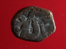 | Description / विवरण | Copper dam fulus of Akbar 962-1014 AH; 1556-1605 AD , from an unknown unidentifiable mint. Obverse Fragments of Fulus Quaterfoil Reverse, fragments of -9- nuhsad |