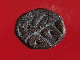 | Description / विवरण | Copper dam fulus of Akbar 962-1014 AH; 1556-1605 AD , from an unknown unidentifiable mint. Obverse, fragments of fulus - with quatrefoil. Reverse, fragments of 99- 5 nuhsad - 995 . |