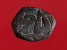 | Description / विवरण | Copper dam fulus of Akbar 962-1014 AH; 1556-1605 AD , from an unknown unidentifiable mint. Obverse, fragments of zarb fulus - . Reverse, fragments of sanh fi 996 nuhsad - . |