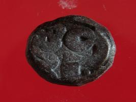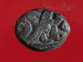 | Description / विवरण | Copper dam fulus of Akbar 962-1014 AH; 1556-1605 AD , from an unknown unidentifiable mint. Obverse, fragments of fulus - with quatrefoil. Reverse, fragments of sanh fi --7 nuhsad |