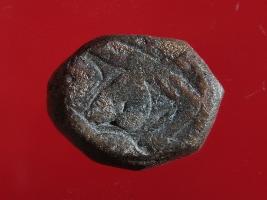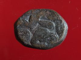 | Description / विवरण | Copper dam fulus of Akbar 962-1014 AH; 1556-1605 AD , from an unknown unidentifiable mint. Obverse, fragments of fulus with a quatrefoil. Reverse, fragments of - 5 - . Rest illegible. |