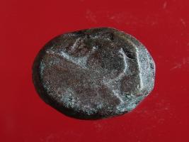 | Description / विवरण | Copper dam fulus of Akbar 962-1014 AH; 1556-1605 AD , from an unknown unidentifiable mint. Obverse, fragments of fulus with a quatrefoil. Reverse - 4 - . Rest illegible |