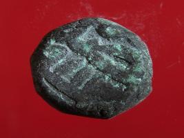 | Description / विवरण | Copper dam fulus of Akbar 962-1014 AH; 1556-1605 AD , from an unknown unidentifiable mint. Obverse, fragments of fulus with a quatrefoil. Reverse, fragments of sanh 983 nuhsad -. 983 AH . |