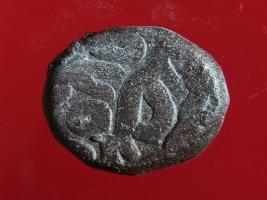 | Description / विवरण | Copper dam fulus of Akbar 962-1014 AH; 1556-1605 AD , from an unknown unidentifiable mint. Obverse, fragments of zarb fulus -. Reverse, fragments of 970 nuhsad haftad. 970 AH . |