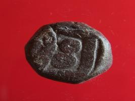 | Description / विवरण | Copper dam fulus of Akbar 962-1014 AH; 1556-1605 AD , from an unknown unidentifiable mint. Obverse, fragments of fulus with a quatrefoil. Reverse, fragments of 1001 |