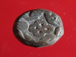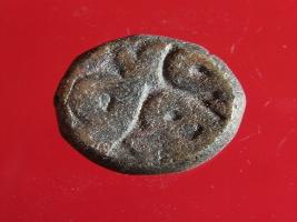 | Description / विवरण | Copper dam fulus of Akbar 962-1014 AH; 1556-1605 AD , from an unknown unidentifiable mint. Obverse, fragments of fulus with a quatrefoil. Reverse, fragments of fi -89 nuhsad 989 AH |