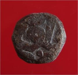 | Description / विवरण | Copper dam fulus of Akbar 962-1014 AH; 1556-1605 AD , from an unknown unidentifiable mint. Obverse Fragments of Fulus Quaterfoil Reverse Fragments of Hazaar 1007 |