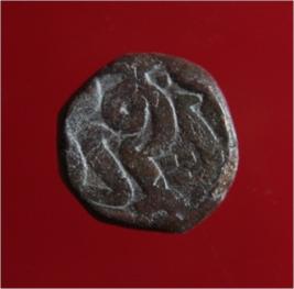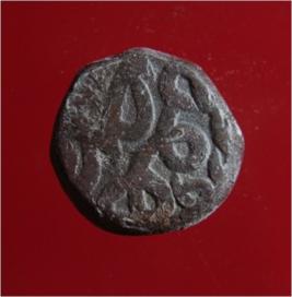 | Description / विवरण | Copper dam fulus of Akbar 962-1014 AH; 1556-1605 AD , from an unknown unidentifiable mint. Obverse Fragments of Fulus Reverse - Nuhsad the loop of svad 9 93- |
