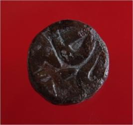 | Description / विवरण | Copper dam fulus of Akbar 962-1014 AH; 1556-1605 AD , from an unknown unidentifiable mint. Obverse Fragments of Zarb Fulus Reverse - Fragments of Nuhsad deep cut across the face rest illegible |