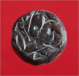 | Description / विवरण | Copper dam fulus of Akbar 962-1014 AH; 1556-1605 AD , from an unknown unidentifiable mint. Obverse Fragments of Zarb Fulus Reverse - Fragments of -97 Nushad |