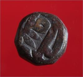 | Description / विवरण | Copper dam fulus of Akbar 962-1014 AH; 1556-1605 AD , from an unknown unidentifiable mint. Obverse Fragments of Zarb Fulus Reverse - Fragments of Sanh -97 Nuhsad |