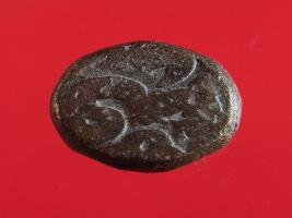 | Description / विवरण | Copper dam fulus of Akbar 962-1014 AH; 1556-1605 AD , from an unknown unidentifiable mint. Obverse, fragments of zarb fulus with a quatrefoil. Reverse, fragments of nuhsad - . Rest illegible. |