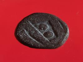 | Description / विवरण | Copper dam fulus of Akbar 962-1014 AH; 1556-1605 AD , from an unknown unidentifiable mint. Obverse, fragments of zarb fulus Reverse, fragments of sanh 1001 1001 H |