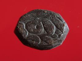 | Description / विवरण | Copper dam fulus of Akbar 962-1014 AH; 1556-1605 AD , from an unknown unidentifiable mint. Obverse, fragments of zarb fulus with a quatrefoil. Rest illegible Reverse, fragments of traces of numeric date - nuhsad Rest illegible |