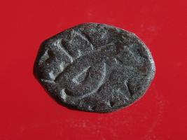 | Description / विवरण | Copper dam fulus of Akbar 962-1014 AH; 1556-1605 AD , from an unknown unidentifiable mint. Obverse, fragments of zarb fulus with a quatrefoil . Reverse, fragments of 973 nuhsad haftad |