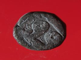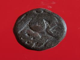 | Description / विवरण | Copper dam fulus of Akbar 962-1014 AH; 1556-1605 AD , from an unknown unidentifiable mint. Obverse, fragments of fulus with a quatrefoil. Reverse, fragments of sanh 999 - |