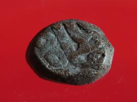 | Description / विवरण | Copper dam fulus of Akbar 962-1014 AH; 1556-1605 AD , from an unknown unidentifiable mint. Obverse, fragments of fulus and a quatrefoil. Reverse, fragments of -00 hazaar 1000 |