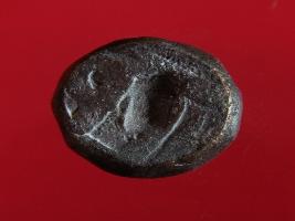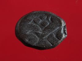 | Description / विवरण | Copper dam fulus of Akbar 962-1014 AH; 1556-1605 AD , from an unknown unidentifiable mint. Obverse, fragments of fulus .. Reverse Big pit in centre; illegible. |